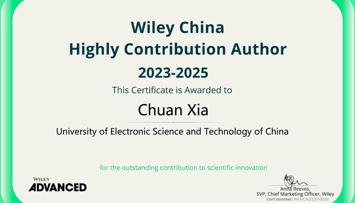 The honor is established by Wiley to recognize outstanding contributions in its highly regarded journals.